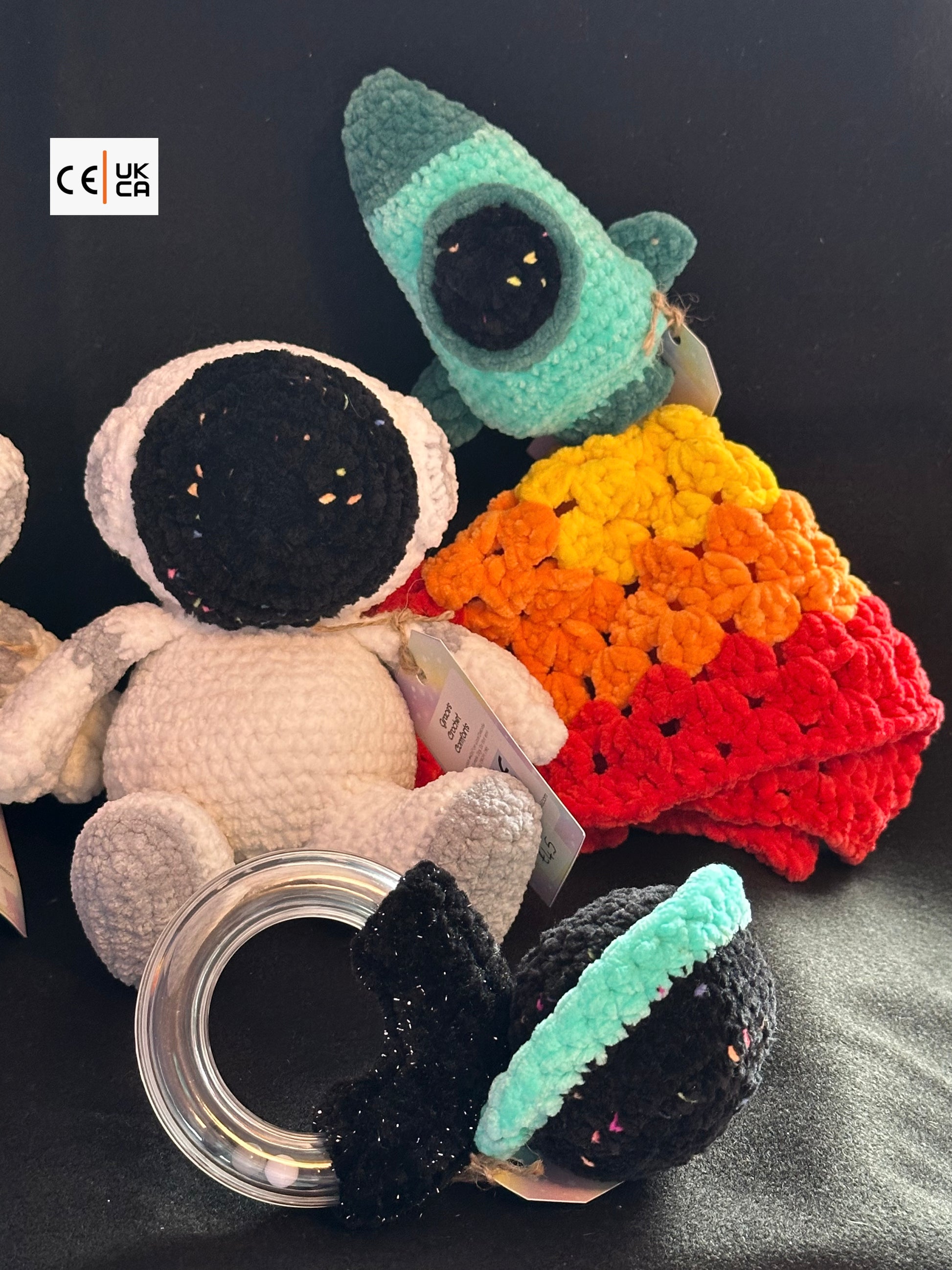- An astronaut soft toy made in compliant, chemically tested plushie yarn.